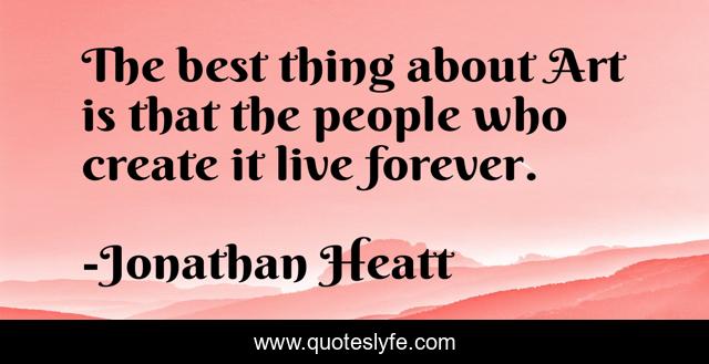 This page presents the quote "The best thing about Art is that the people who create it live forever.". Author of this quote is Jonathan Heatt. This quote is about art, immortality, music, writing,.