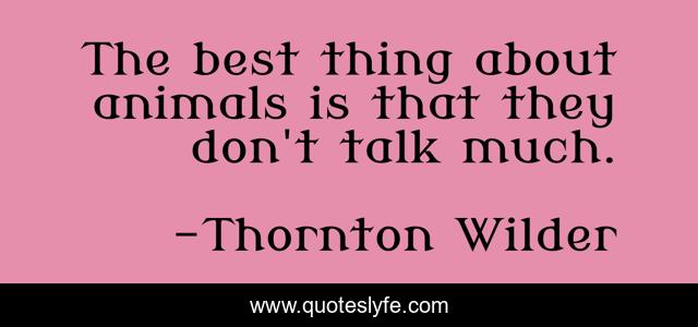 This page presents the quote "The best thing about animals is that they don't talk much.". Author of this quote is Thornton Wilder. This quote is about animals, talk,.