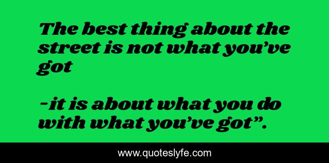 This page presents the quote "The best thing about the street is not what you’ve got". Author of this quote is it is about what you do with what you’ve got”.. .