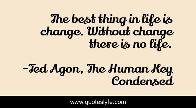 "Ted Agon, The Human Key Condensed Quotes." Quoteslyfe.com, 2025. Sun. 07 Dec. 2025. <https://www.quoteslyfe.com/quote/The-best-thing-in-life-is-change-116816>.