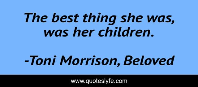 This page presents the quote "The best thing she was, was her children.". Author of this quote is Toni Morrison, Beloved. This quote is about motherhood, children, mothers,.