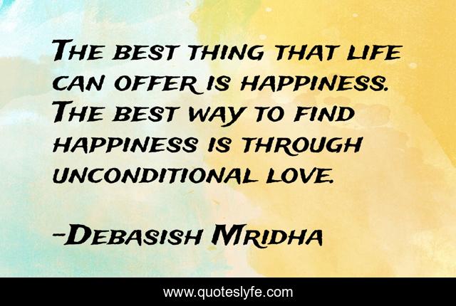 This page presents the quote "The best thing that life can offer is happiness. The best way to find happiness is through unconditional love.". Author of this quote is Debasish Mridha. This quote is about philosophy, inspirational, find-happiness, debasish-mridha, quotes, life-happiness, debasish-mridha-md, unconditional-love, enthusiasm,.