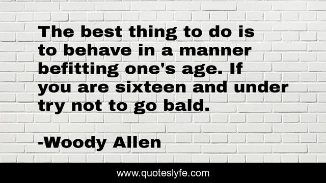 This page presents the quote "The best thing to do is to behave in a manner befitting one's age. If you are sixteen and under try not to go bald.". Author of this quote is Woody Allen. .