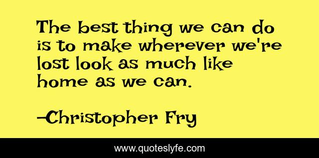This page presents the quote "The best thing we can do is to make wherever we're lost look as much like home as we can.". Author of this quote is Christopher Fry. .