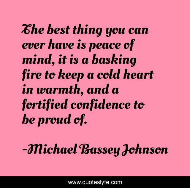 The best thing you can ever have is peace of mind, it is a basking fire to keep a cold heart in warmth, and a fortified confidence to be proud of.