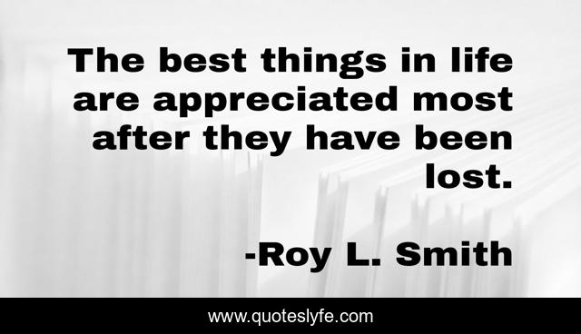 This page presents the quote "The best things in life are appreciated most after they have been lost.". Author of this quote is Roy L. Smith. .