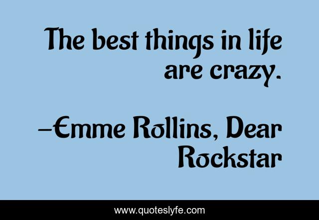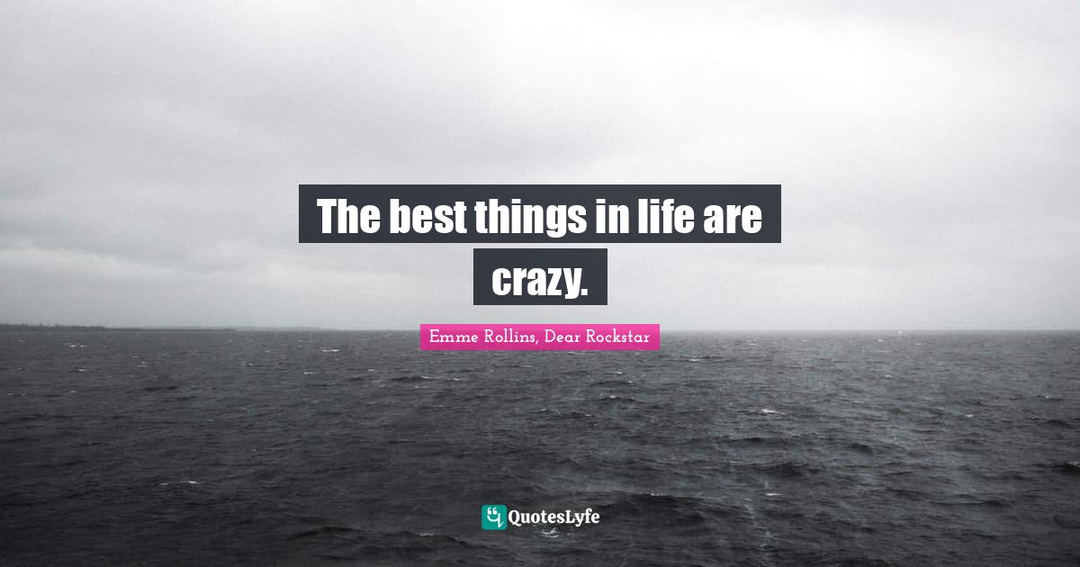 This page presents the quote "The best things in life are crazy.". Author of this quote is Emme Rollins, Dear Rockstar. This quote is about crazy, rock-star, rockstar, philosophy, new-adult, rockstars, new-adult-romance,.