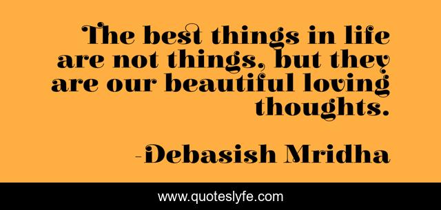 This page presents the quote "The best things in life are not things, but they are our beautiful loving thoughts.". Author of this quote is Debasish Mridha. This quote is about life, the-best-things-in-life, philosophy, debasish-mridha, quotes, inspirational, enthusiasm, debasish-mridha-m-d, loving-thoughts,.