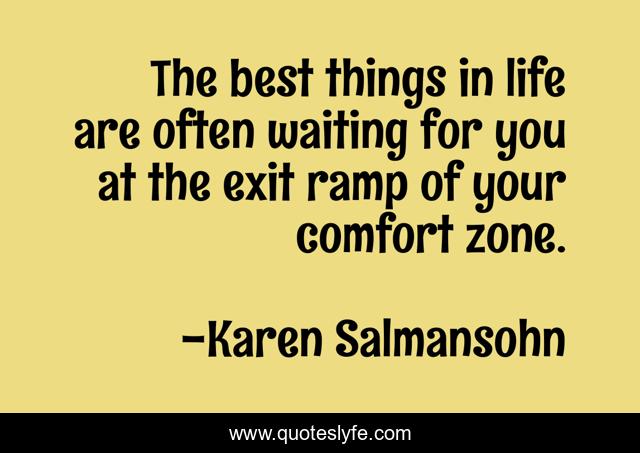 This page presents the quote "The best things in life are often waiting for you at the exit ramp of your comfort zone.". Author of this quote is Karen Salmansohn. This quote is about life, comfort zone, waiting,.