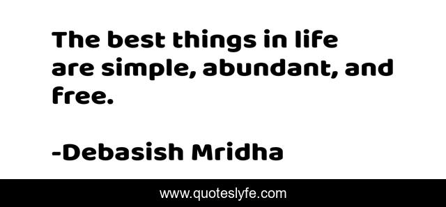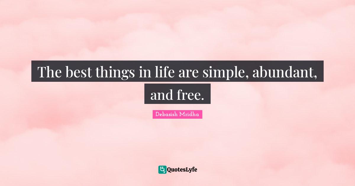 This page presents the quote "The best things in life are simple, abundant, and free.". Author of this quote is Debasish Mridha. This quote is about life, best-things-in-life, philosophy, debasish-mridha, free, quotes, inspirational, enthusiasm, abundant,.