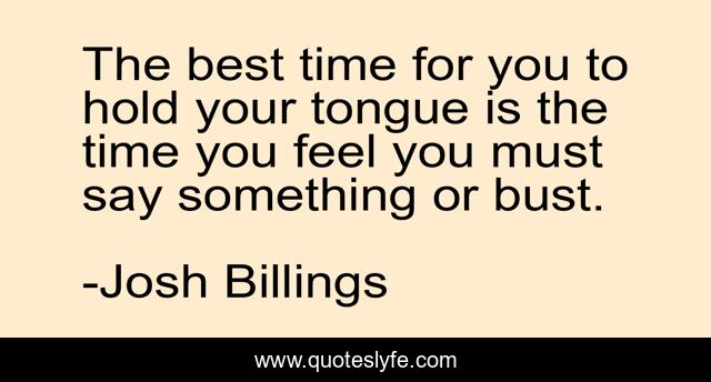 This page presents the quote "The best time for you to hold your tongue is the time you feel you must say something or bust.". Author of this quote is Josh Billings. This quote is about tongue, speech, bust,.