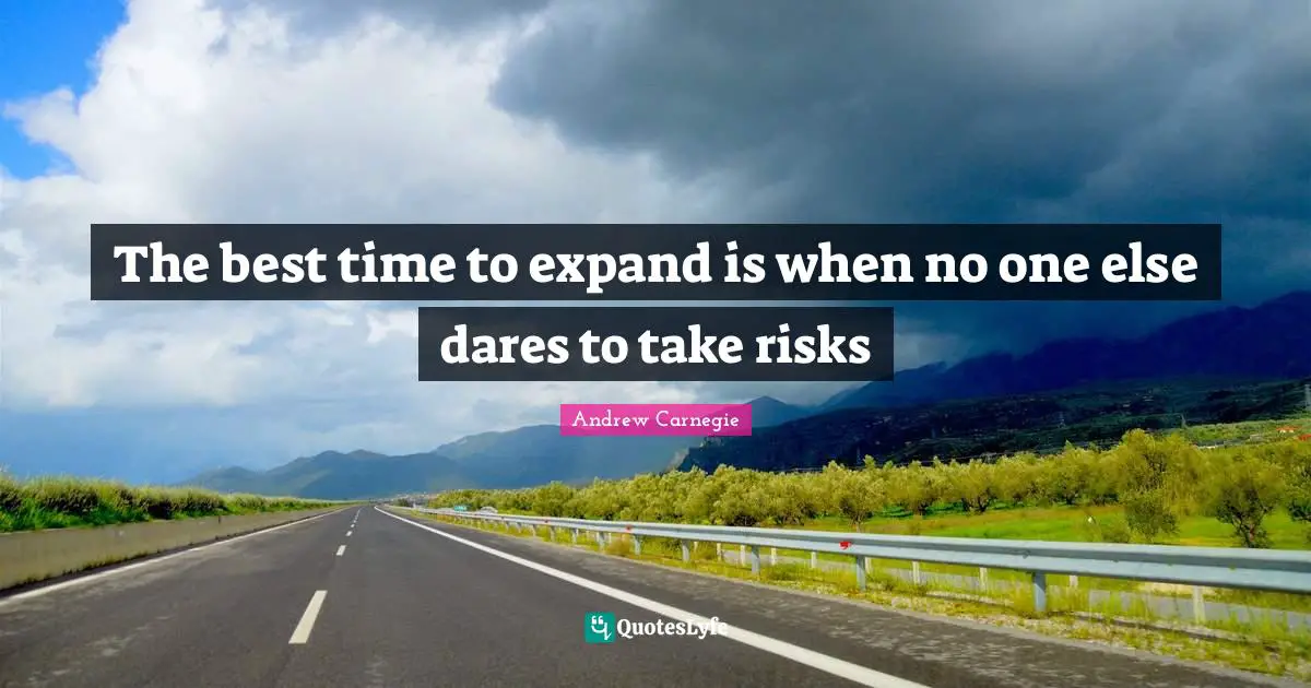 This page presents the quote "The best time to expand is when no one else dares to take risks". Author of this quote is Andrew Carnegie. This quote is about time, dare, best times, risk,.