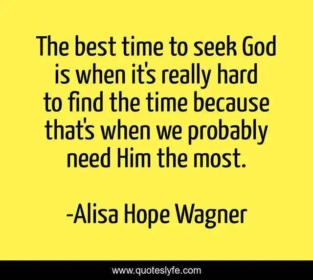 "Alisa Hope Wagner Quotes." Quoteslyfe.com, 2025. Fri. 05 Dec. 2025. <https://www.quoteslyfe.com/quote/The-best-time-to-seek-God-is-115161>.