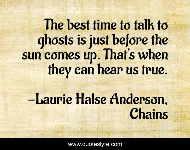 "Laurie Halse Anderson, Chains Quotes." Quoteslyfe.com, 2025. Fri. 05 Dec. 2025. <https://www.quoteslyfe.com/quote/The-best-time-to-talk-to-ghosts-236222>.