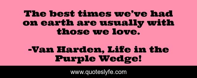This page presents the quote "The best times we’ve had on earth are usually with those we love.". Author of this quote is Van Harden, Life in the Purple Wedge!. This quote is about good-times, loved-ones, nostalgia,.