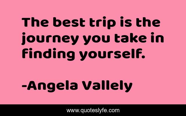 This page presents the quote "The best trip is the journey you take in finding yourself.". Author of this quote is Angela Vallely. This quote is about life, self-love, wisdom, inspirational, self-help, enthusiasm, journey-of-life,.