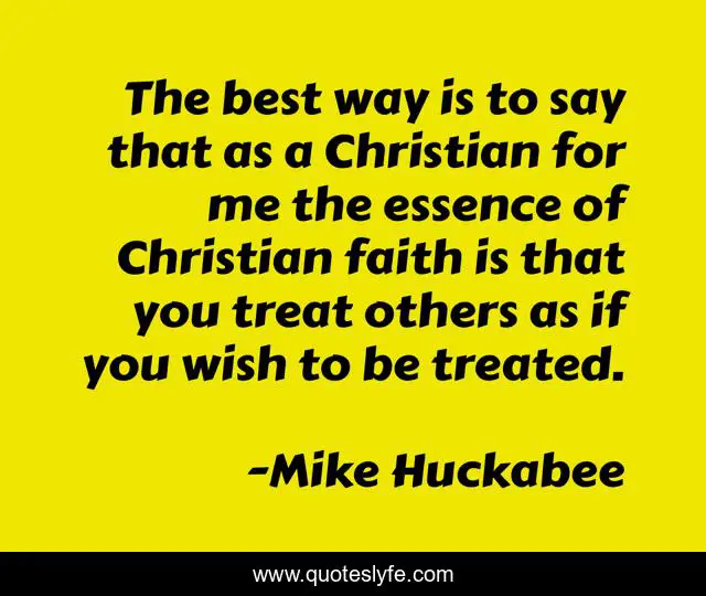 This page presents the quote "The best way is to say that as a Christian for me the essence of Christian faith is that you treat others as if you wish to be treated.". Author of this quote is Mike Huckabee. This quote is about me, treat, best,.