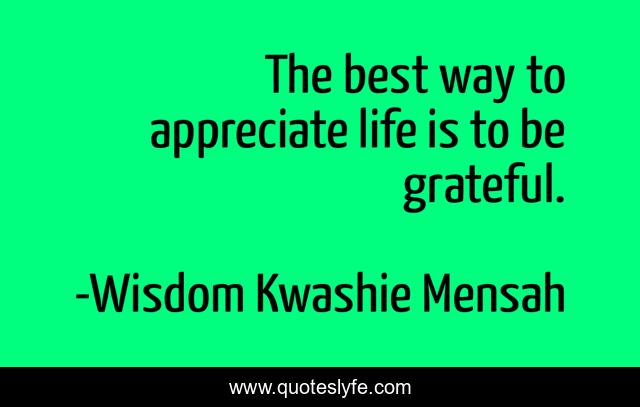 "Wisdom Kwashie Mensah Quotes." Quoteslyfe.com, 2025. Fri. 05 Dec. 2025. <https://www.quoteslyfe.com/quote/The-best-way-to-appreciate-life-is-29174>.