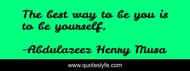 "Abdulazeez Henry Musa Quotes." Quoteslyfe.com, 2025. Sat. 06 Dec. 2025. <https://www.quoteslyfe.com/quote/The-best-way-to-be-you-is-83573>.