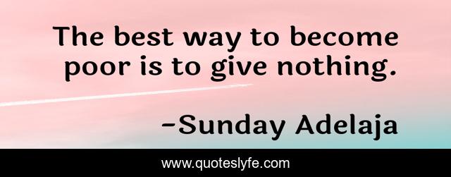 This page presents the quote "The best way to become poor is to give nothing.". Author of this quote is Sunday Adelaja. This quote is about poor, best, give-nothing,.