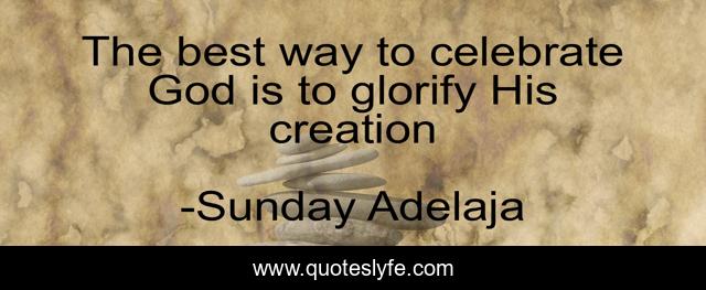 This page presents the quote "The best way to celebrate God is to glorify His creation". Author of this quote is Sunday Adelaja. This quote is about love, people, money, principles, employment, worship, destiny, service, god,.
