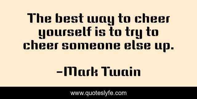 This page presents the quote "The best way to cheer yourself is to try to cheer someone else up.". Author of this quote is Mark Twain. .