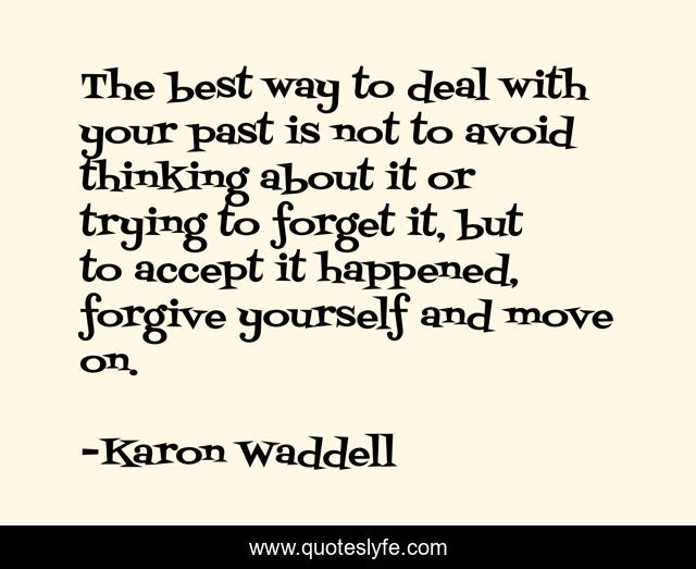 This page presents the quote "The best way to deal with your past is not to avoid thinking about it or trying to forget it, but to accept it happened, forgive yourself and move on.". Author of this quote is Karon Waddell. This quote is about enthusiasm, inspirational-motivation, inspirational, life-lessons, life-and-sayings,.