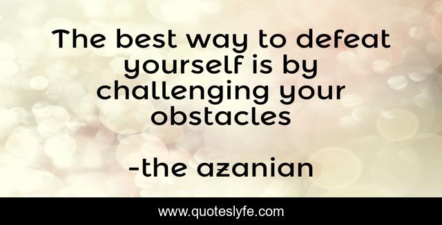 This page presents the quote "The best way to defeat yourself is by challenging your obstacles". Author of this quote is the azanian. .