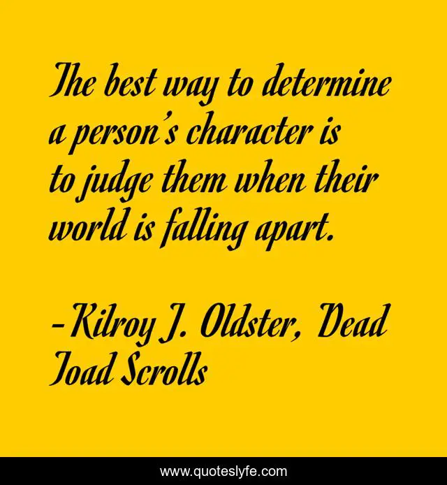 This page presents the quote "The best way to determine a person’s character is to judge them when their world is falling apart.". Author of this quote is Kilroy J. Oldster, Dead Toad Scrolls. .