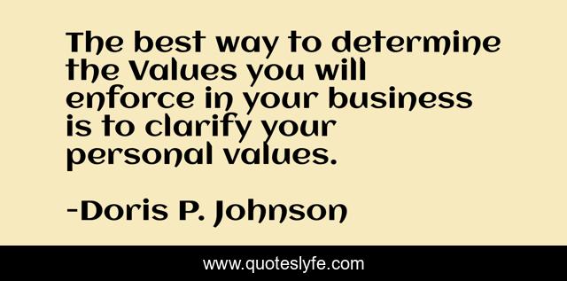 This page presents the quote "The best way to determine the Values you will enforce in your business is to clarify your personal values.". Author of this quote is Doris P. Johnson. This quote is about business-success, simplicity, business-advice, knowledge, business, business-start-up, create, creativity, business-management-training,.