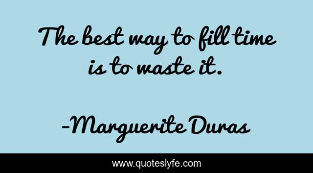 This page presents the quote "The best way to fill time is to waste it.". Author of this quote is Marguerite Duras. This quote is about waste, best, way,.