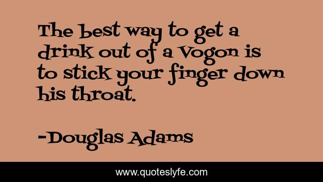 This page presents the quote "The best way to get a drink out of a Vogon is to stick your finger down his throat.". Author of this quote is Douglas Adams. .