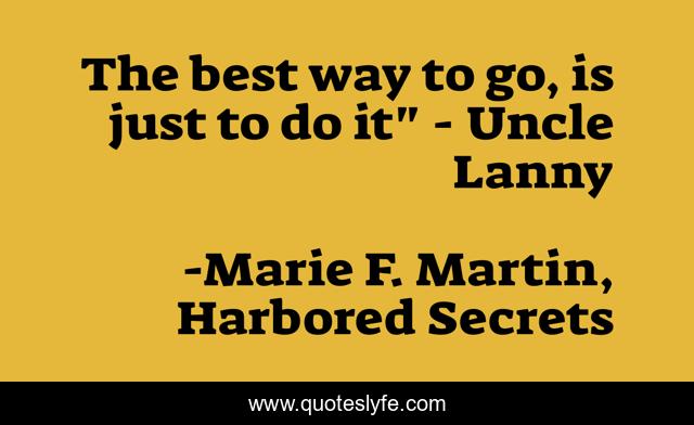 This page presents the quote "The best way to go, is just to do it" - Uncle Lanny". Author of this quote is Marie F. Martin, Harbored Secrets. This quote is about harbored-secrets, advice, truth,.
