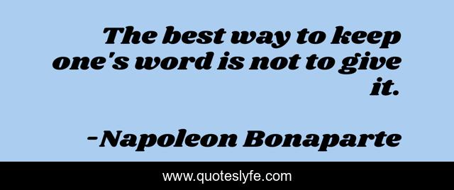 This page presents the quote "The best way to keep one's word is not to give it.". Author of this quote is Napoleon Bonaparte. This quote is about word, way, give,.