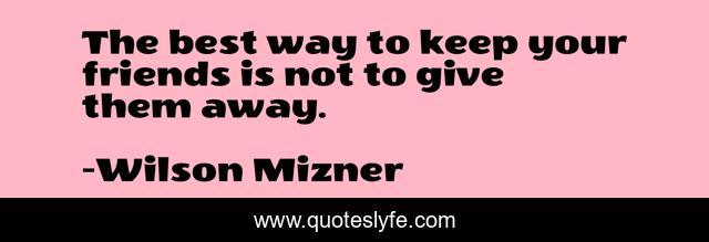 This page presents the quote "The best way to keep your friends is not to give them away.". Author of this quote is Wilson Mizner. .