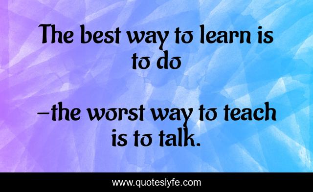This page presents the quote "The best way to learn is to do". Author of this quote is the worst way to teach is to talk.. .