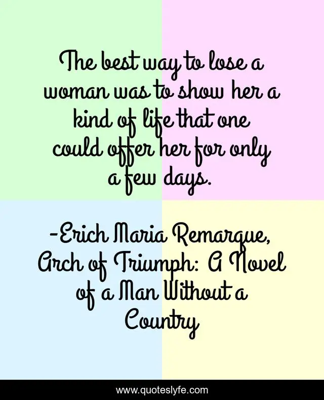 "Erich Maria Remarque, Arch of Triumph: A Novel of a Man Without a Country Quotes." Quoteslyfe.com, 2025. Sat. 06 Dec. 2025. <https://www.quoteslyfe.com/quote/The-best-way-to-lose-a-woman-120134>.