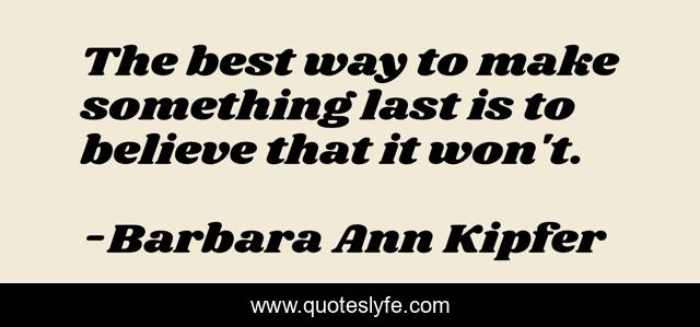 This page presents the quote "The best way to make something last is to believe that it won't.". Author of this quote is Barbara Ann Kipfer. This quote is about nothing-last-forever, believe, best-friends,.