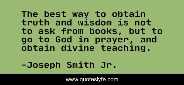 This page presents the quote "The best way to obtain truth and wisdom is not to ask from books, but to go to God in prayer, and obtain divine teaching.". Author of this quote is Joseph Smith Jr.. This quote is about enlightenment, prayer,.