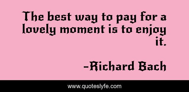 This page presents the quote "The best way to pay for a lovely moment is to enjoy it.". Author of this quote is Richard Bach. This quote is about enjoy, moment, best,.