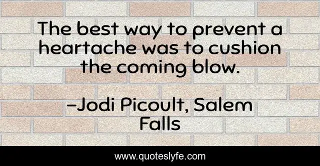 This page presents the quote "The best way to prevent a heartache was to cushion the coming blow.". Author of this quote is Jodi Picoult, Salem Falls. This quote is about heartache, love, affection,.
