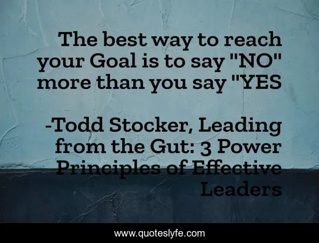 This page presents the quote "The best way to reach your Goal is to say "NO" more than you say "YES". Author of this quote is Todd Stocker, Leading from the Gut: 3 Power Principles of Effective Leaders. This quote is about discipline, confidence, goal, positive, motivational, focus, goal-setting, inspirational, enthusiasm,.