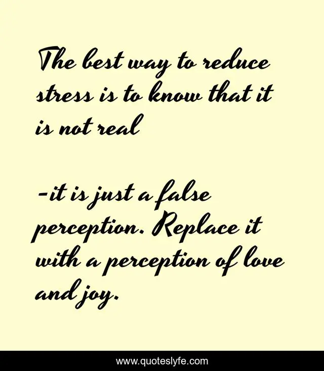 "it is just a false perception. Replace it with a perception of love and joy. Quotes." Quoteslyfe.com, 2025. Fri. 05 Dec. 2025. <https://www.quoteslyfe.com/quote/The-best-way-to-reduce-stress-is-74264>.