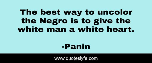 This page presents the quote "The best way to uncolor the Negro is to give the white man a white heart.". Author of this quote is Panin. .