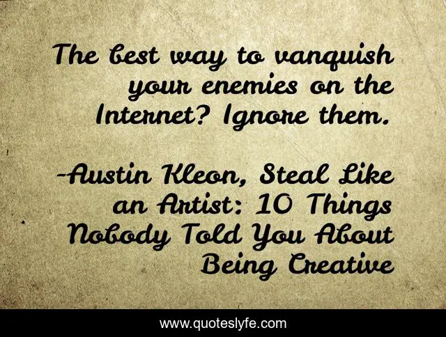"Austin Kleon, Steal Like an Artist: 10 Things Nobody Told You About Being Creative Quotes." Quoteslyfe.com, 2025. Sat. 06 Dec. 2025. <https://www.quoteslyfe.com/quote/The-best-way-to-vanquish-your-enemies-243477>.