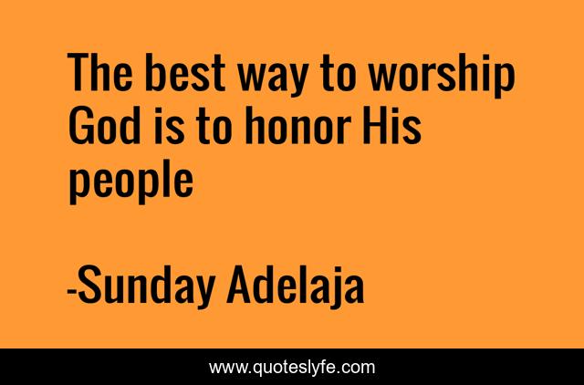 This page presents the quote "The best way to worship God is to honor His people". Author of this quote is Sunday Adelaja. This quote is about kingdom, life, love, destiny, serving-god, people, money, god, work,.