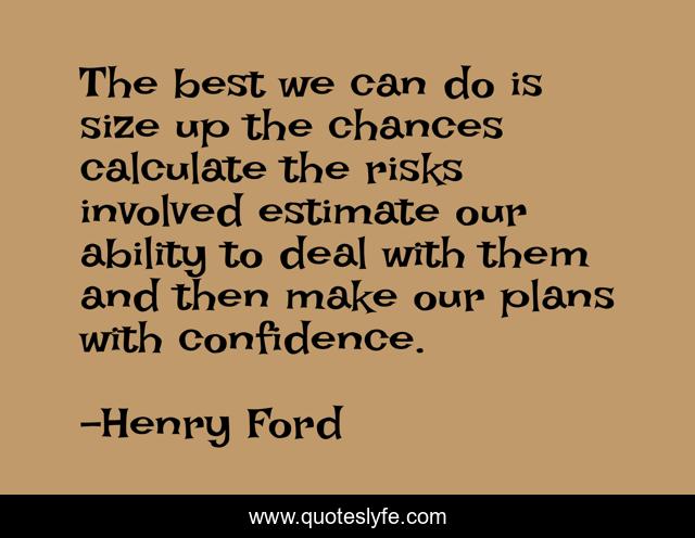This page presents the quote "The best we can do is size up the chances calculate the risks involved estimate our ability to deal with them and then make our plans with confidence.". Author of this quote is Henry Ford. .
