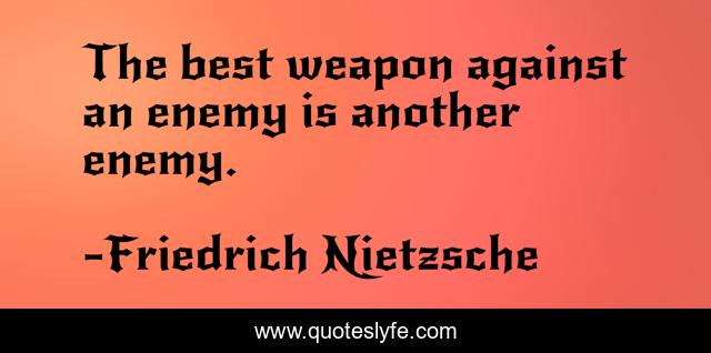 This page presents the quote "The best weapon against an enemy is another enemy.". Author of this quote is Friedrich Nietzsche. This quote is about enemy, weapon, best,.