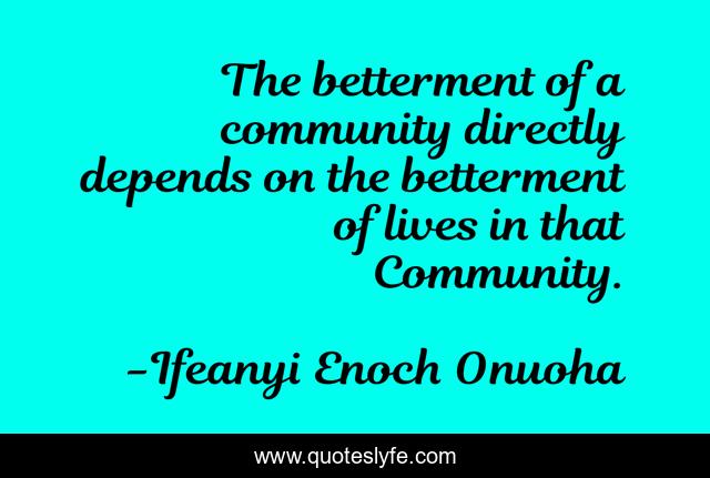 This page presents the quote "The betterment of a community directly depends on the betterment of lives in that Community.". Author of this quote is Ifeanyi Enoch Onuoha. This quote is about ifeanyi-enoch-onuoha, community, social-entreprize,.