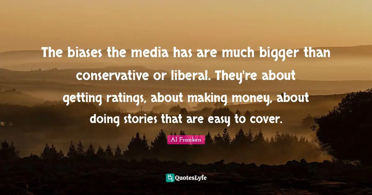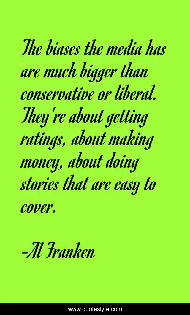 This page presents the quote "The biases the media has are much bigger than conservative or liberal. They're about getting ratings, about making money, about doing stories that are easy to cover.". Author of this quote is Al Franken. .